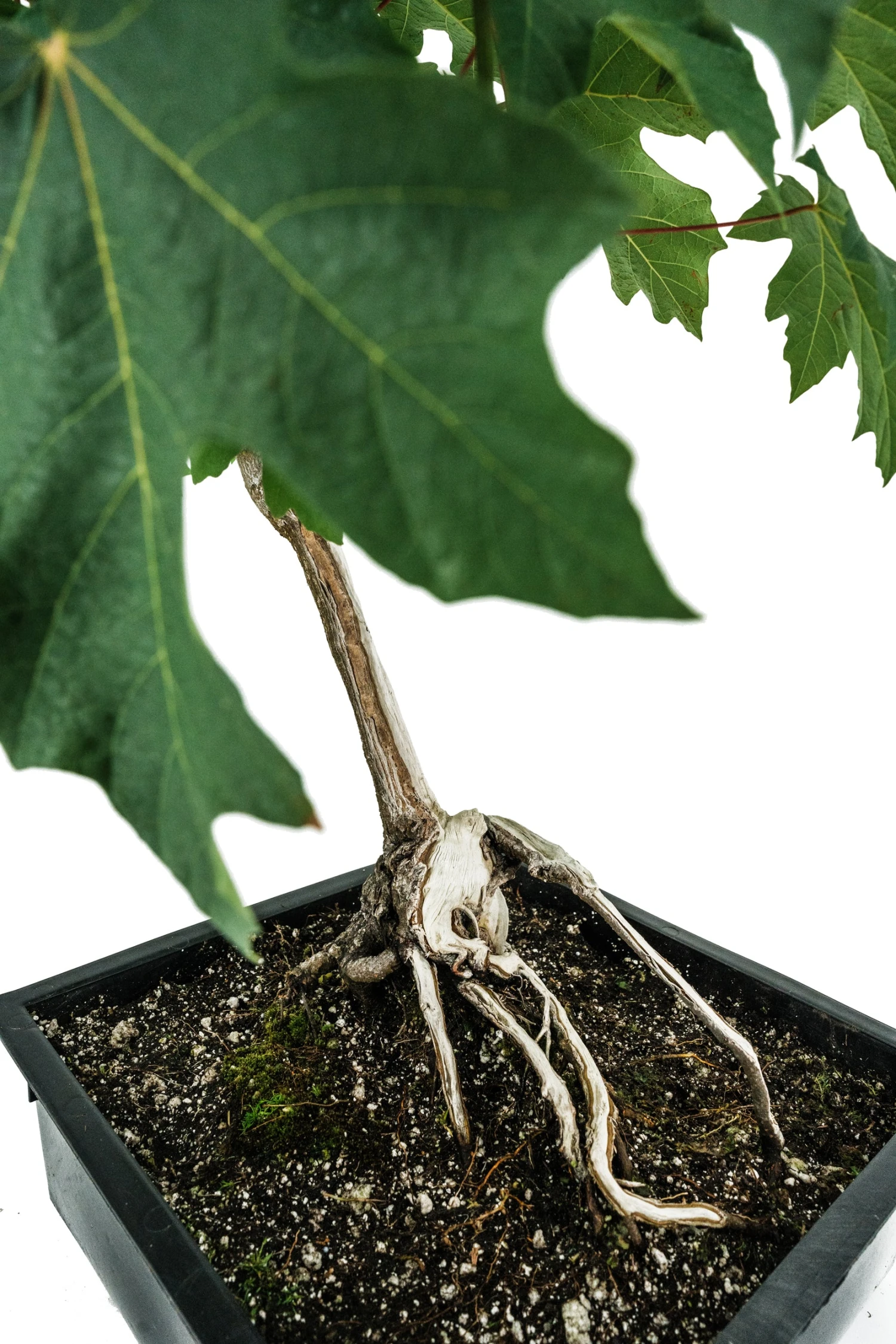 This 20 year-old tree has been trimmed for 4 years, shaped with wire for 2 years, and root-pruned/potted for one year. It’s an important North American maple, and it’s ready for a final planting.