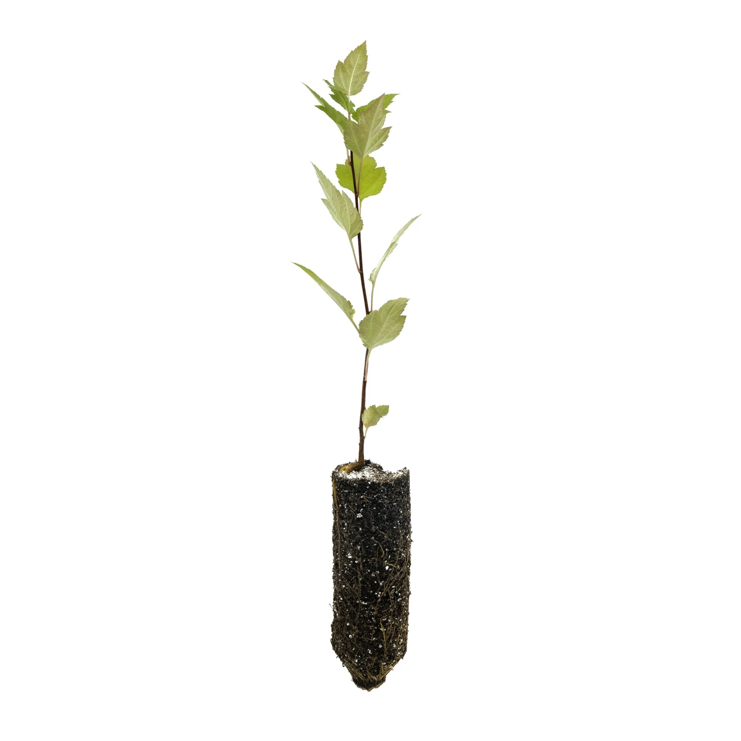 Due to the dynamic nature of actively growing trees, as well as the tremendous variation between species’ growth rates, we rely on the cubic volume of a seedling’s root mass to determine its “size” (Small / Medium / Large / XL). Within each size there is minor variance — the dimensions provided here represent the category minimum. If exact measurements are essential, please contact us about current stock.